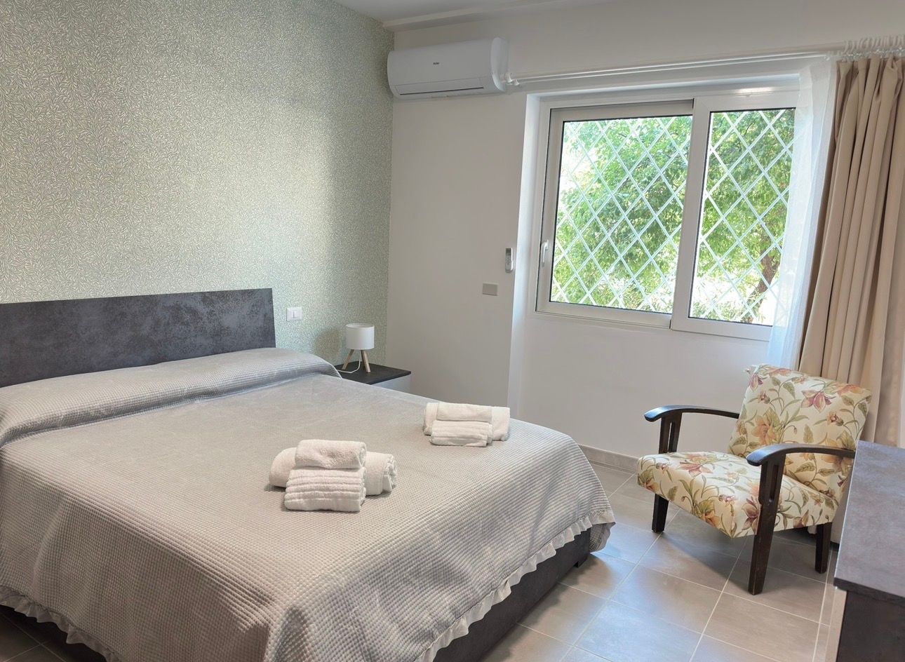 Le nostre strutture comprendono tre camere accoglienti nel quartiere Fleming — elegante, verde e tranquillo — e un monolocale indipendente immerso nella campagna di Grottarossa, dove si trova anche la nostra piccola fattoria.